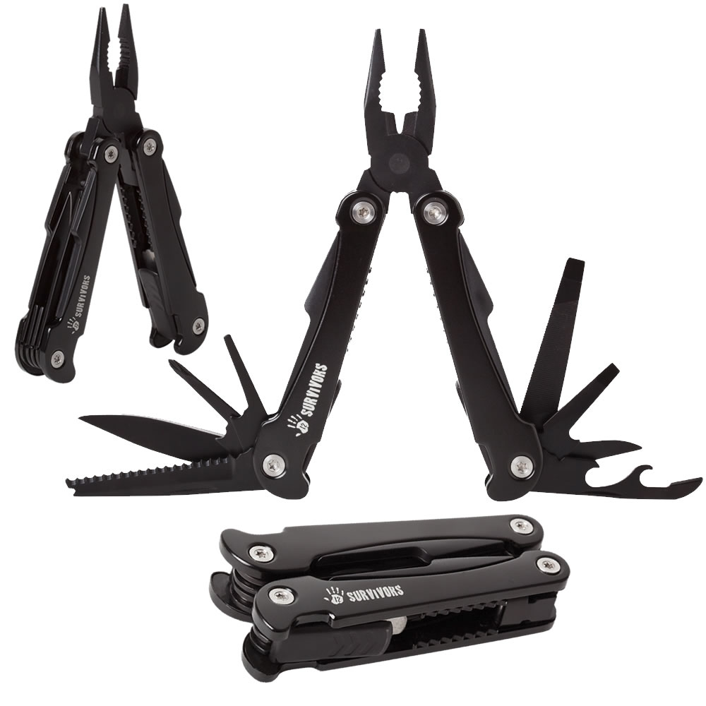 The 12 Survivors Multi-Tool combines versatility and strength, providing a solution to any project. Its versatility allows you the convenience of having all the basic tools you need in one compact and lightweight, handheld unit. The all-aluminum frame provides the strength to handle tough jobs, while the locking mechanism ensures the tool in use stays in the open position until the job is finished. Complete with a nylon pouch, and a snap button loop for easy attachment to additional gear, the 12 Survivors Multi-Tool will complete any challenge thrown its way.