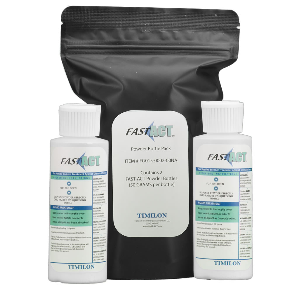 The FAST-ACT formulation is non-toxic, non-flammable, non-corrosive, and significantly reduces both liquid and vapor hazards. Since the dry powder neutralizes threats upon contact, on-site incident management and clean-up times are reduced. The FAST-ACT sorbent powder comes in the form of bulk powders, mitts, and microfiber towels.