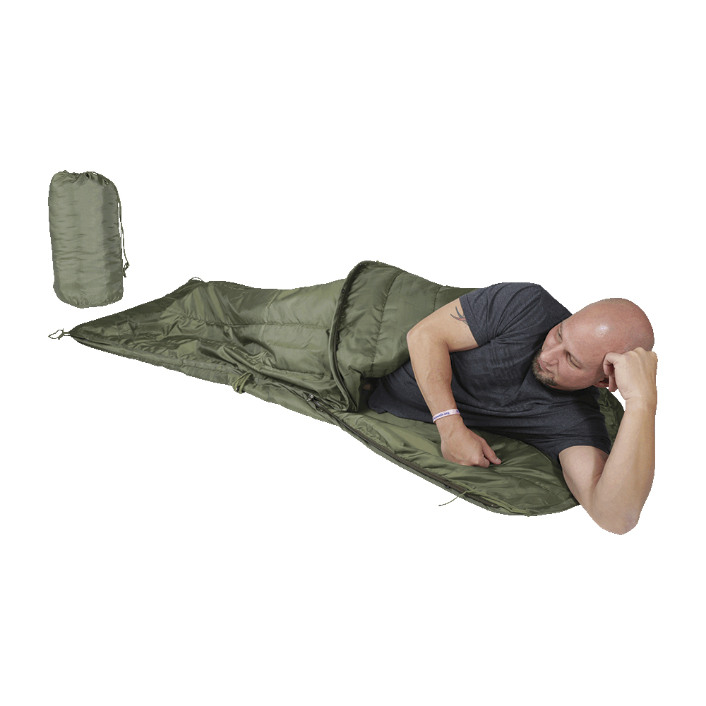 Great addition to any bug-out bag or camping equipment for use as a blanket, shelter, pillow, ground cover, or warm, lightweight sleeping bag when using zipper feature. Made of polyester 210T rip-stop featuring ties for using as a poncho liner. Two-way nylon zipper gives the option of using as a sleeping bag or leaving the bottom open, forming a “tube”, useful when wearing boots or sitting around in the cold. Zippers are built to allow two blankets to be zipped together for a sleeping bag that is double the size. Double pull tabs allows for inside or outside access when using as sleeping bag with snap closures along outer edge for extra security as well as to help keep out wind and cold air. Includes 210T rip-stop compression stuff sack for storage.