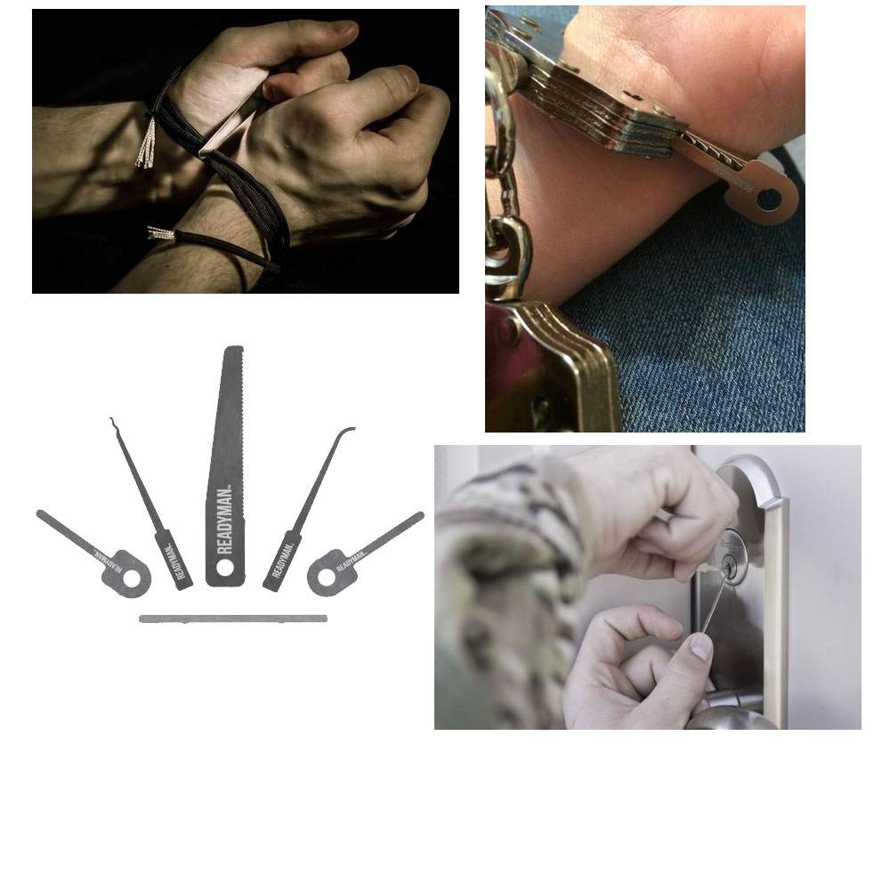 The Hostage Escape Card (Kidnap Escape) was designed by our Special Forces Cadre to be your discreet and constant companion. It features an array of implements to assist with the escape of unlawful restraints. You can easily carry it in a wallet or pocket and each individual tool can be removed for even more concealed carry options. You will be able to defeat handcuffs, cut through rope, tape, wood, zip-ties and even pick locks!