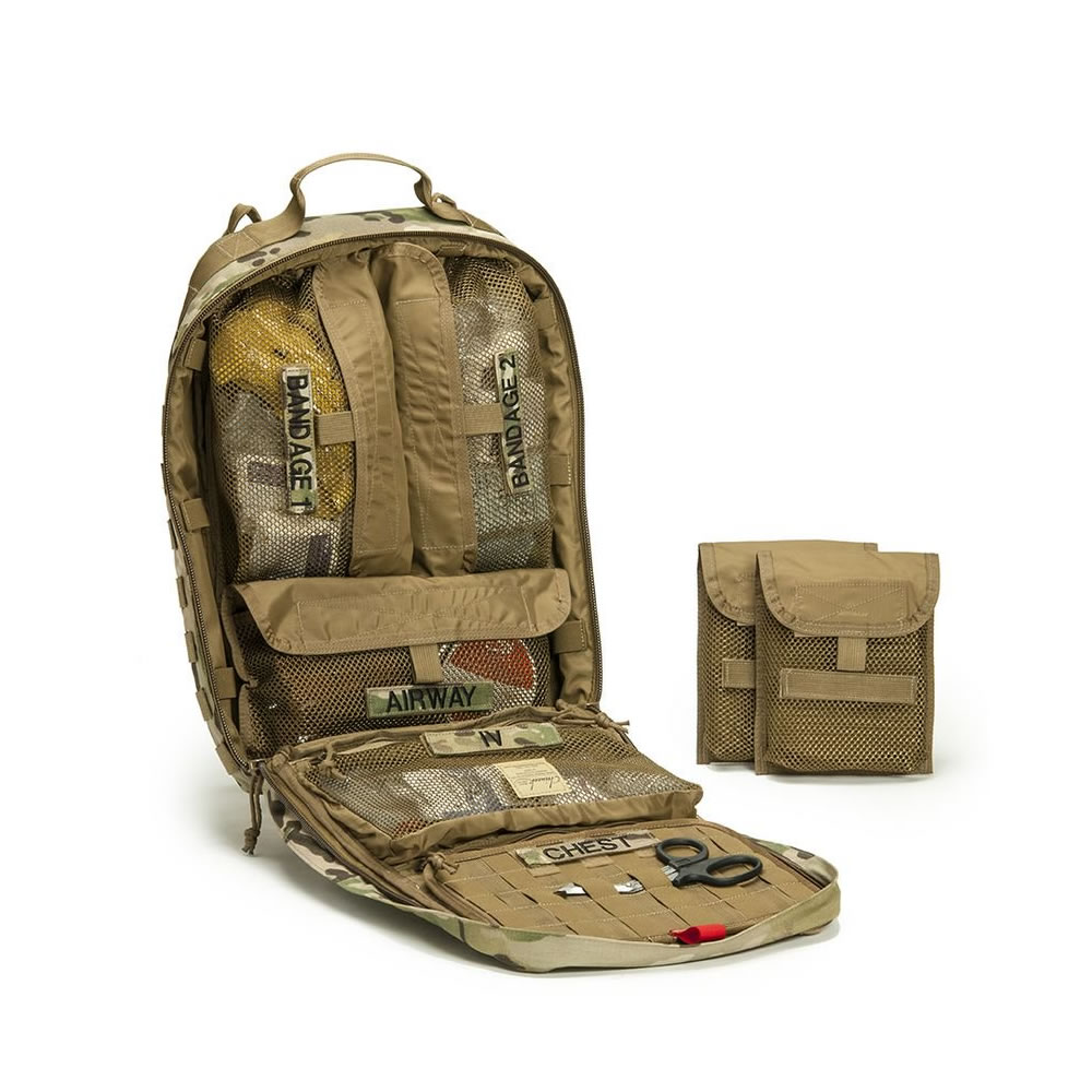 Tactical Medical Kit - Medical Operator (TMK-MO) was specifically designed with input from the Special Operations community to meet the demand for a low-profile medical backpack. It utilizes the same modular platform as our larger and highly popular medic pack, the TMK-ME. With its small profile, extensive PALS webbing, internal elastic retainer bands, and the inclusion of an instrument panel, the TMK-MO is ideal for medical operators when space, weight, and functionality are of the utmost importance. Bag is Berry Amendment Compliant, made of denier Cordura nylon and MOLLE compatible with PALS webbing.