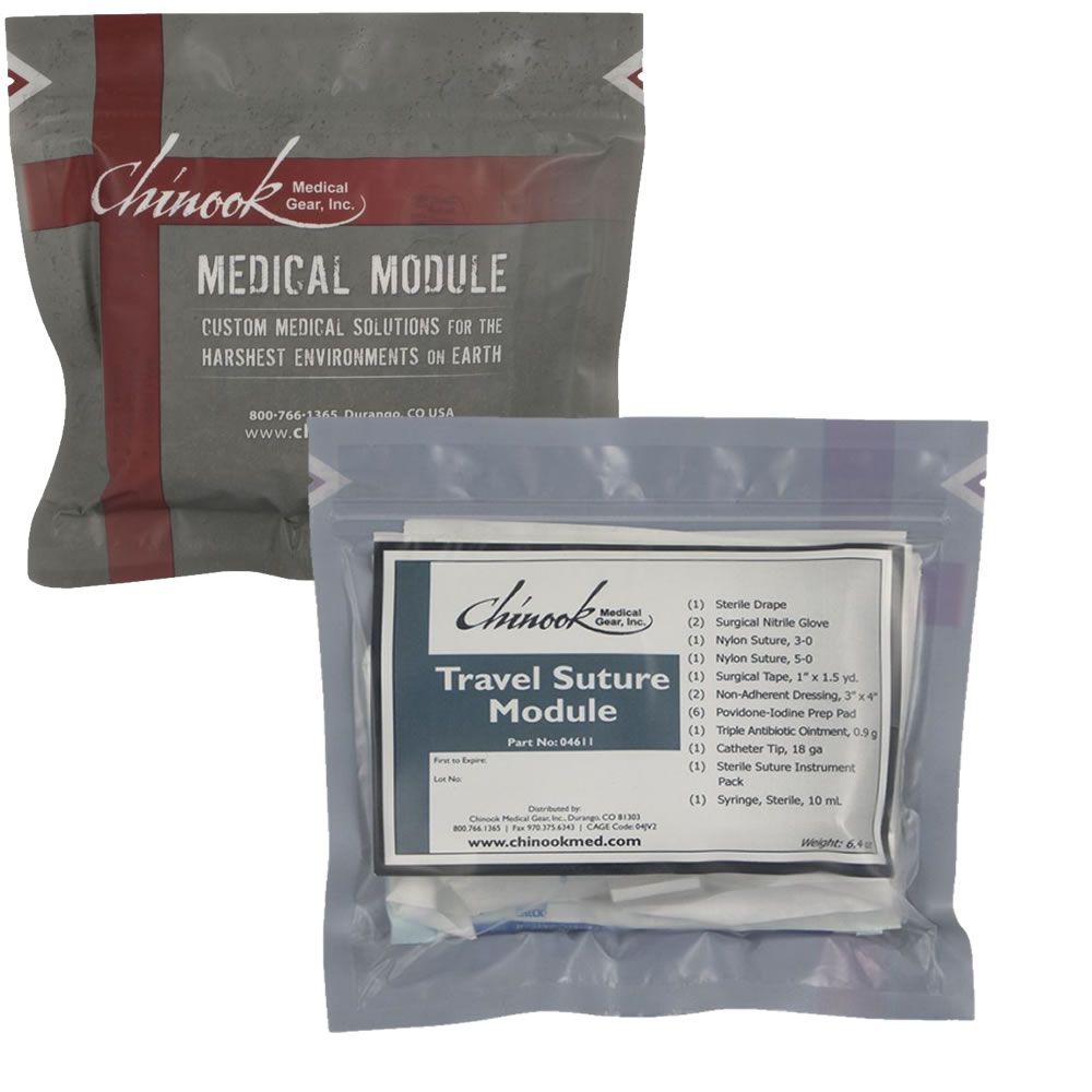 The Travel Suture Module is designed for individuals traveling in areas where medical equipment is not readily available or the sterility of that equipment is questionable. If you or your fellow travelers experience any injury requiring stitches, simply hand this suture module to a trained caregiver and have confidence in knowing that you are being treated with high quality, sterile medical supplies.