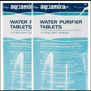 EPA Registered Purifier, Aquamira Water Purifier Tablets contain a patented chlorine dioxide formula that produces a powerful germicidal agent when released in water.