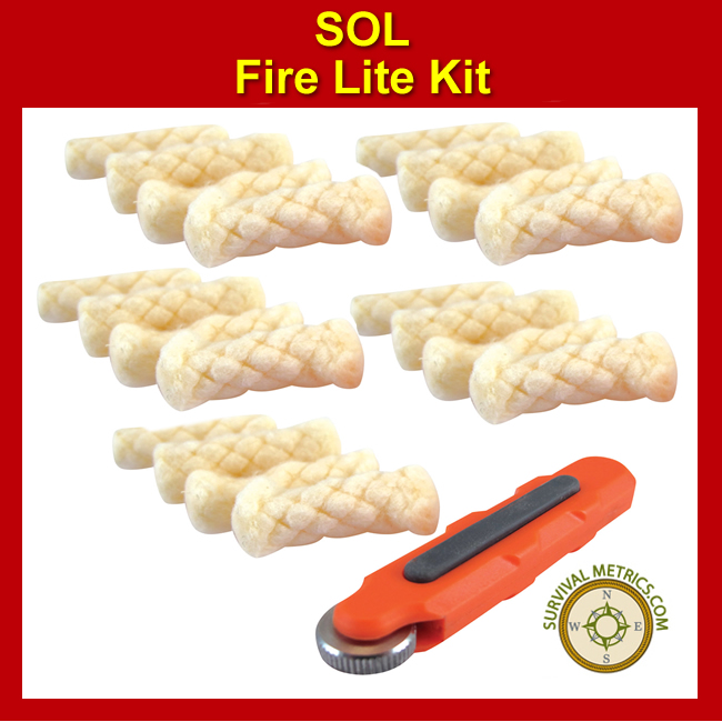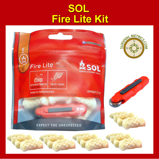 Minimalist and practical, the SOL Fire Lite Kit gives you the supplies to start up to 20 fires all in a lightweight, waterproof package. In addition to the 20 pieces of waterproof tinder, each Fire Lite Kit includes a Fire Lite sparker and comprehensive fire starting instructions.